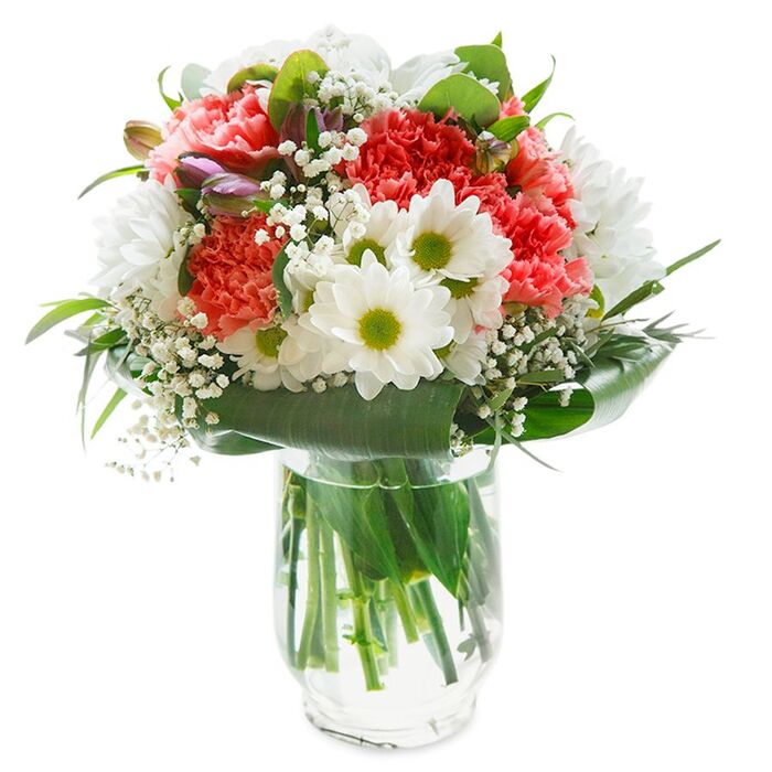 Vintage Touch is a sweet, romantic flower arrangement from Flowers Hoxton, designed to brighten any day with its soft, timeless charm. This hand-crafted bouquet features snow-white chrysanthemums, delicate gypsophila and light pink carnations, all tightly wrapped in elegant aspidistra leaves for a refined vintage look. Perfect for birthdays, anniversaries, get-well wishes or simple 'thinking of you' moments, this classic pastel mix brings gentle colour and warmth to any home or office. Each bouquet is created fresh in our Hoxton flower shop, with flowers delivered in bud so you can enjoy watching them slowly open and last longer. We guarantee 5 days of freshness, giving you peace of mind that your gift will stay beautiful. The original size bouquet is pictured; the vase shown is for illustration purposes only. Due to seasonal availability, we may substitute some blooms with flowers of similar colour, style and quality, always maintaining the premium look and feel. Enjoy reliable next day flower delivery in Hoxton and across London on orders placed before 4 pm. Choose Vintage Touch for a graceful, vintage-style floral gift that never goes out of fashion.